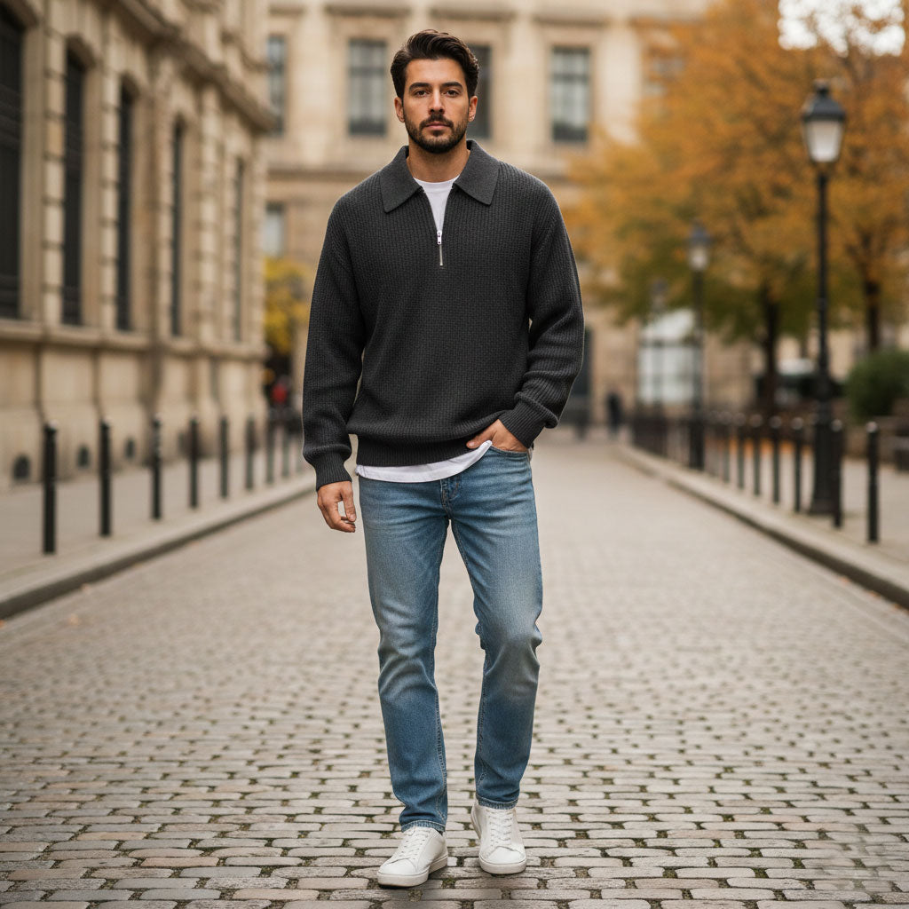 Men who choose the Belvia™ Knitted Half-Zip experience elevated comfort, sharper styling, and a more confident everyday presence. Engineered for structure, softness, and durability, this sweater delivers a polished look that holds up wear after wear.